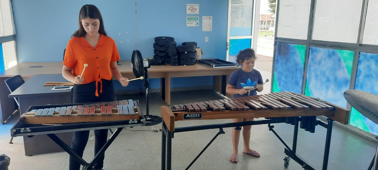 Hoje estou lecionando percussão, apenas no Projeto Aprendiz da Corporação Musical Euterpe, onde já atuo a 8 anos.